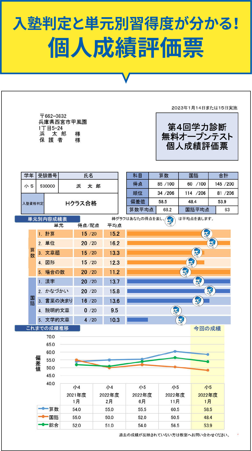 駿台・浜学園塾生でない方を対象に、 国語と算数の習熟度確認テストを実施。